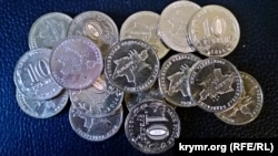 Ранее в аннексированном Россией Крыму появились сувенирные монеты, посвященные «присоединению» полуострова. Монеты продавались по цене от 100 до 120 рублей.
