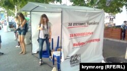 В палатке находились печатные издания, которые рассказывали «Как снять Меняйло с должности губернатора» и что Севастополю «нужны такие люди как (Алексей) Чалый» (бывший руководитель российского парламента города – КР).