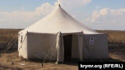 Возле контрольного пункта въезда-выезда «Чонгар» на админгранице с аннексированным Крымом установлены палатка для оказания медицинской помощи и цистерна с питьевой водой, сообщает корреспондент Крым.Реалии.