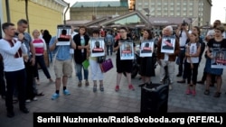 В Киеве, на Почтовой площади 25 августа прошла акция в поддержку Олега Сенцова и Александра Кольченко, приуроченная к годовщине их ареста, сообщает корреспондент Крым.Реалии.