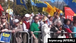 На первомайскую демонстрацию в Симферополе вышли работники бюджетной сферы.