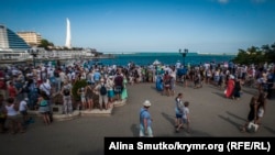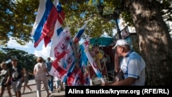 Флаги, бескозырки, тематические воздушные шары, сувениры-пилотки и казаки с нагайками – так аннексированный Севастополь встречает туристов, прибывших посмотреть парад ко Дню военно-морского флота соседней России.