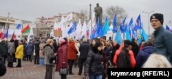 Ораторы выступали с критикой санкций США в сторону России, призывали крымчан взять участие в выборах президента соседней России.