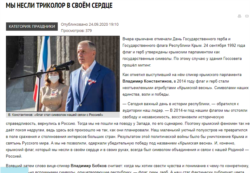 Кстати, несколькими днями ранее, те же «Крымские известия» опубликовали еще две заметки, где Владимир Константинов учит читателей, а также детей на уроке в одной из школ, как нужно относиться к российским символам. Одна из них: «Мы несли триколор в своем сердце» (думаю, тут не совсем правда – человек, родившийся в советское время в Молдове, когда триколор был запрещен, и все время проживший в Украине, Константинов если и знал о триколоре, то совсем поверхностно, и уж вряд ли он был в его сердце. – авт.).