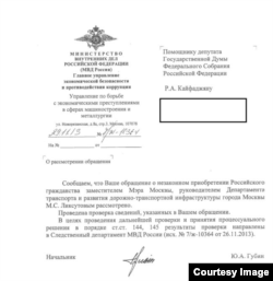 Через два месяца, в конце ноября 2013 года, Кайфаджяну пришел ответ из МВД, в котором говорилось, что сведения были проверены и направлены в Следственный департамент МВД России в целях проведения дальнейшей проверки и принятия процессуального решения.