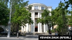 В стеклах «Диалога» отражается Покровский собор, который находится напротив. Высота храма – около 37 метров, что приблизительно соответствует двенадцатиэтажному дому. Покровский собор строился по проекту архитектора В. А. Фельдмана чуть больше 10 лет, 4 июня 1903 года (по старому стилю – авт.) составлен акт приема работ, а освящен храм был 25 февраля 1905 года. В декабре 1932 года «после многочисленных жалоб трудящихся» Президиум КрымЦИКа своим постановлением ликвидировал Покровский собор в связи, якобы, «с отказом религиозного населения от пользования таковым». Службы в соборе возобновились по разрешению немецкой оккупационной власти и, после окончания войны, продолжались до 1963-го, когда храм снова был закрыт. Нижний этаж передали городскому архиву, а верхний этаж горсовету спортивных обществ. В 1992 году по решению президента Украины собор был возвращен религиозной общине.