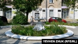 Через дорогу от кенассы – дом № 16, который уже попадал в кадр, когда я рассказывал о красивых воротах в центре Севастополя. Это единственный дом на улице, двор которого отгорожен забором. В шестнадцатом доме в разное время проживали многие флотские начальники. И фонтан имелся, который уже лет 30 не работает и переоборудован в клумбу.