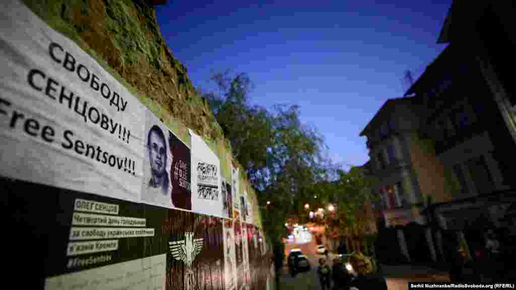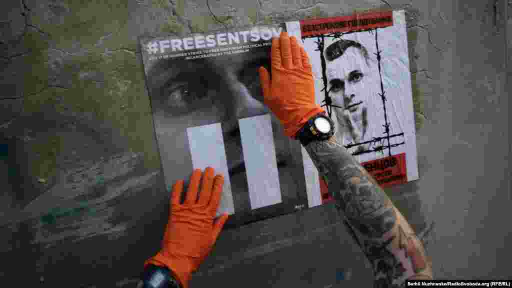 Во время акции активисты расклеили напротив российского консульства около 100 плакатов в поддержку Сенцова и других политузников Кремля. Также активисты раскрасили забор в синий и желтый цвета, написав на нем «FreeSentsov».