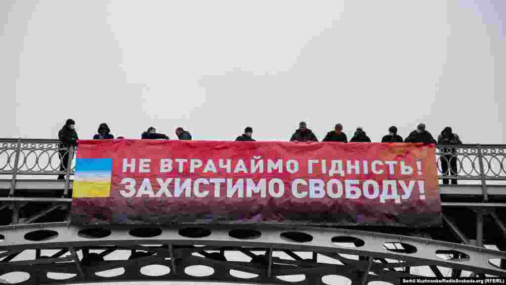 21 ноября в Украине отмечают День достоинства и свободы. В этот день начались две украинские революции: Оранжевая (2004) и Революция достоинства (2013-14 годов). В центре Киева собрались люди, в основном участники протестов в столице, чтобы почтить память погибших во время Революции достоинства. У Креста памяти Героев Небесной сотни состоялся совместный поминальный молебен. А на пешеходном мосту вывесили баннер с надписью «Не теряйте достоинство! Защитим свободу!».