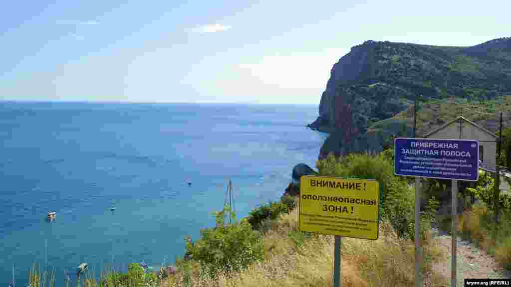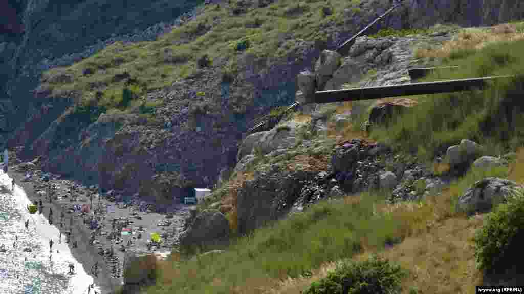 Несколько лет назад оползень из каменных глыб разного размера спустился на пляж, изменив прибрежную полосу.