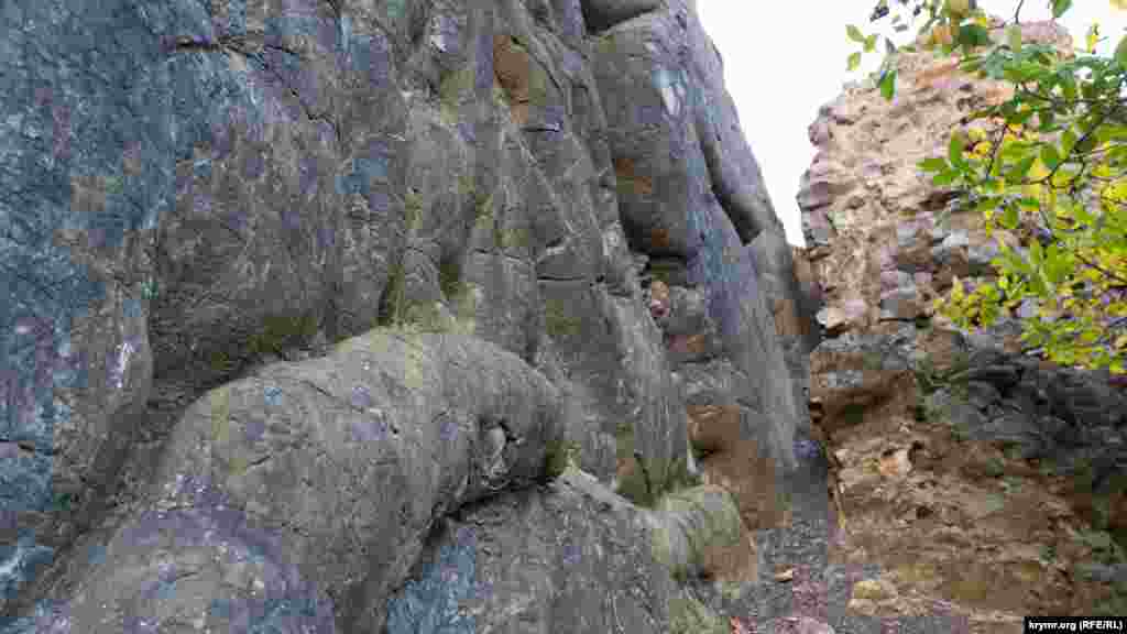 В глубоком обрыве над сельским прудом хорошо видны застывшие потоки лавы, которые напоминают толстые канаты. Судя по всему, потоки излившейся лавы застывали постепенно. В результате этого процесса получились образования различных причудливых форм.