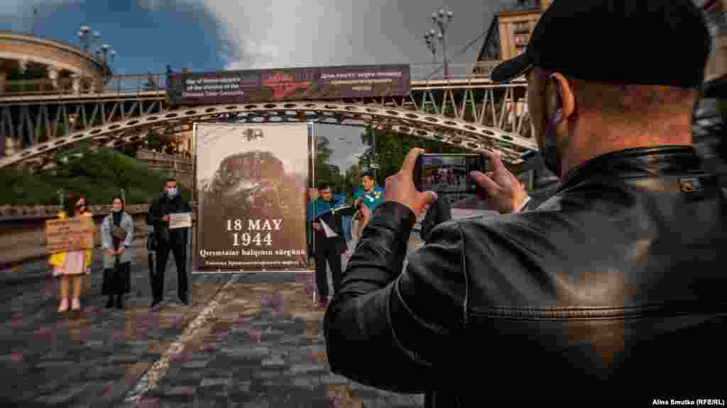 Почтить память жертв геноцида пришли муфтий Духовного управления мусульман Украины «Умма» Саид Исмагилов, украинская певица из Крыма Джамала со старшим сыном, бывший политзаключенный Владимир Балух и простые крымчане.