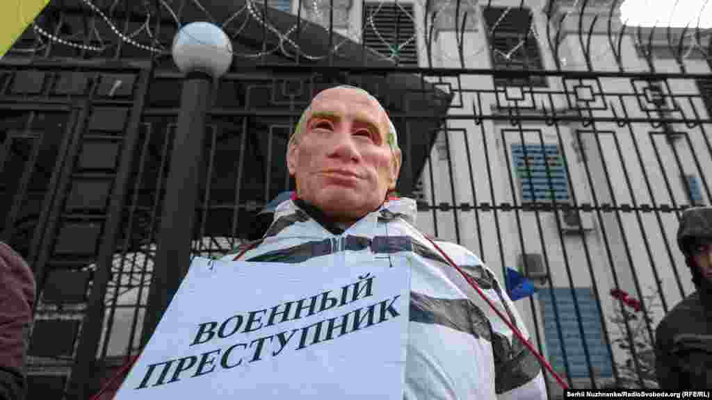 Во время акции бывшие политзаключенные – украинцы и крымские татары, которые побывали в заключении в России и аннексированном Крыму – дали показания в импровизированном «Гаагском суде». Таким образом активисты решили «поздравить» с днем рождения президента России.