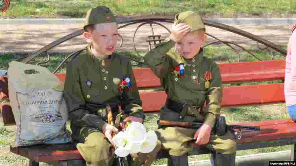 Родители наряжают своих чад в одежду советских солдат, моряков, служащих десантных войск, или просто в камуфляж. Нередко на массовых празднованиях можно встретить и коляски, переделанные под военную технику.