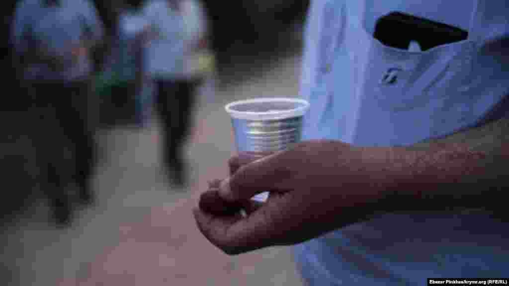 Вечером 31 мая ифтар провели у здания суда. После вечерней молитвы собравшиеся делились финиками и водой, ожидая приговор суда. Корреспондент Крым.Реалии зафиксировал, как это было.