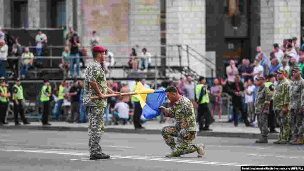 На главной улице украинской столицы – Крещатике – состоялась вечерняя тренировка личного состава, который традиционно привлекают к военному параду ко Дню Независимости Украины. В этом году страна будет праздновать 27-ю годовщину.