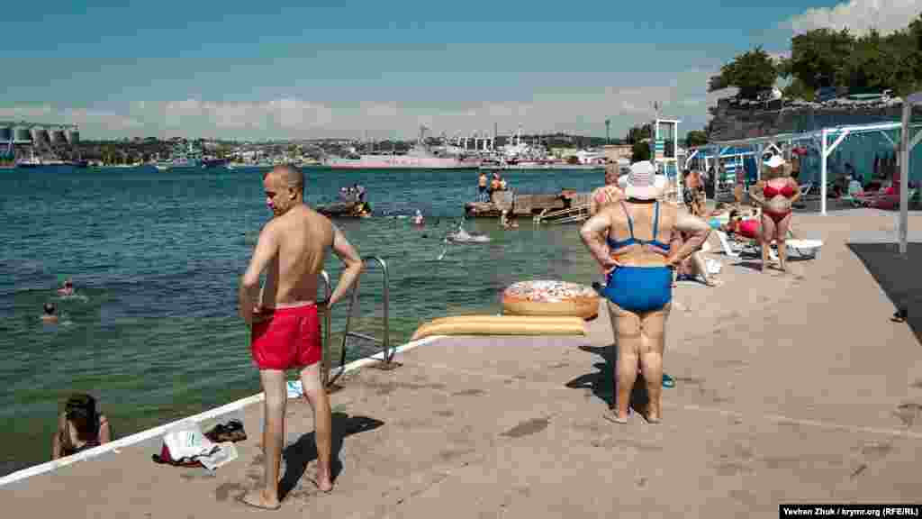 Несмотря на это, на протяжение всей Корабелки есть только один официальный пляж в Ушаковой балке, длина которого менее ста метров. Остальные прибрежные территории заняты портовыми зданиями и воинскими частями Черноморского флота России. Туристов у моря здесь можно увидеть редко, а местные жители загорают прямо на бетоне и купаются в небольших бухтах – Аполлоновой и Угольной.