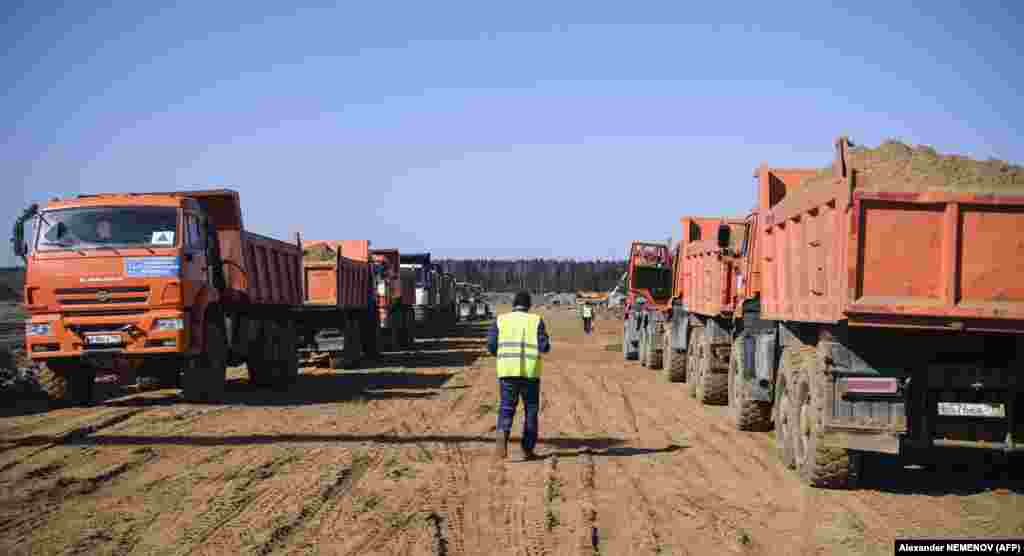 Экскаваторы на строительной площадке в районе села Бабенки (Россия)
