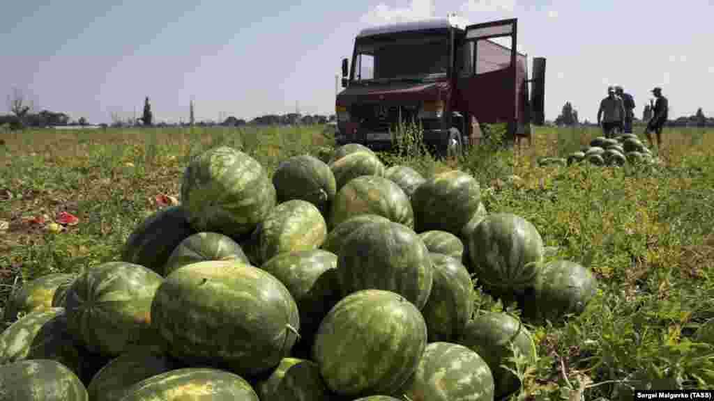 О том, как проходит уборка урожая бахчевых в одном из крымских сел – в фотогалерее Крым.Реалии.