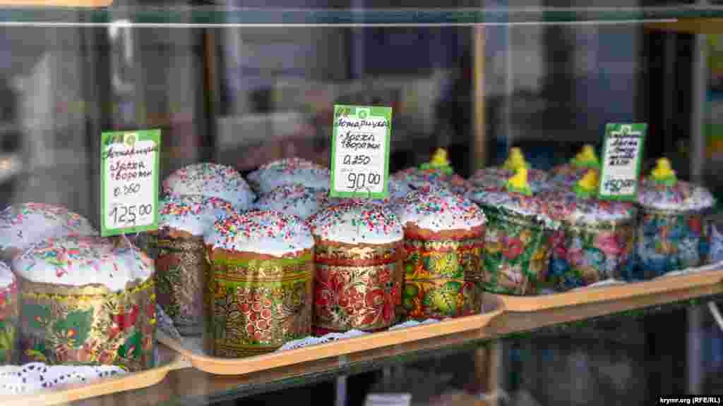 19 апреля в аннексированном Крыму христиане восточного обряда отметят Пасху. За несколько дней до этого на полуострове началась торговля пасхальными куличами. В некоторых магазинах крымской столицы их цена варьируется от 45 до 250 рублей (от 16 до 92 гривен соответственно).
