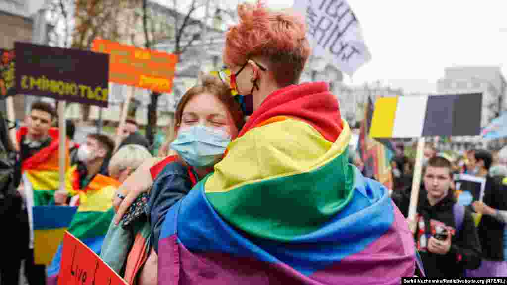 Одновременно с Маршем равенства в центре Киева проходила альтернативная акция. Как сообщил корреспондент Радіо Свобода, на нее собрались около 200 человек, сторонников «традиционных ценностей», среди них – представители правых, праворадикальных организаций, религиозных организаций. Акции были разделены и проходили под усиленной охраной