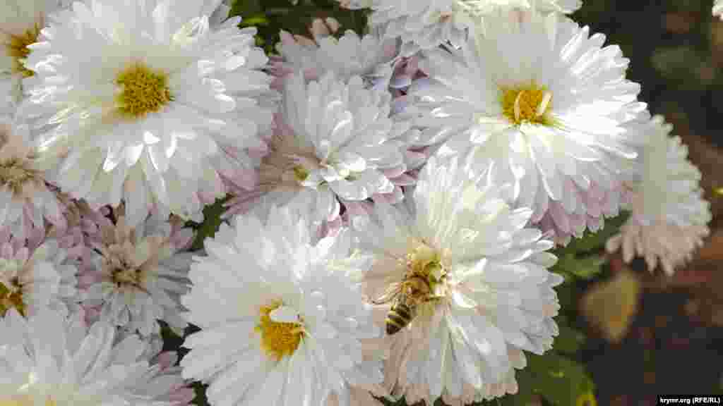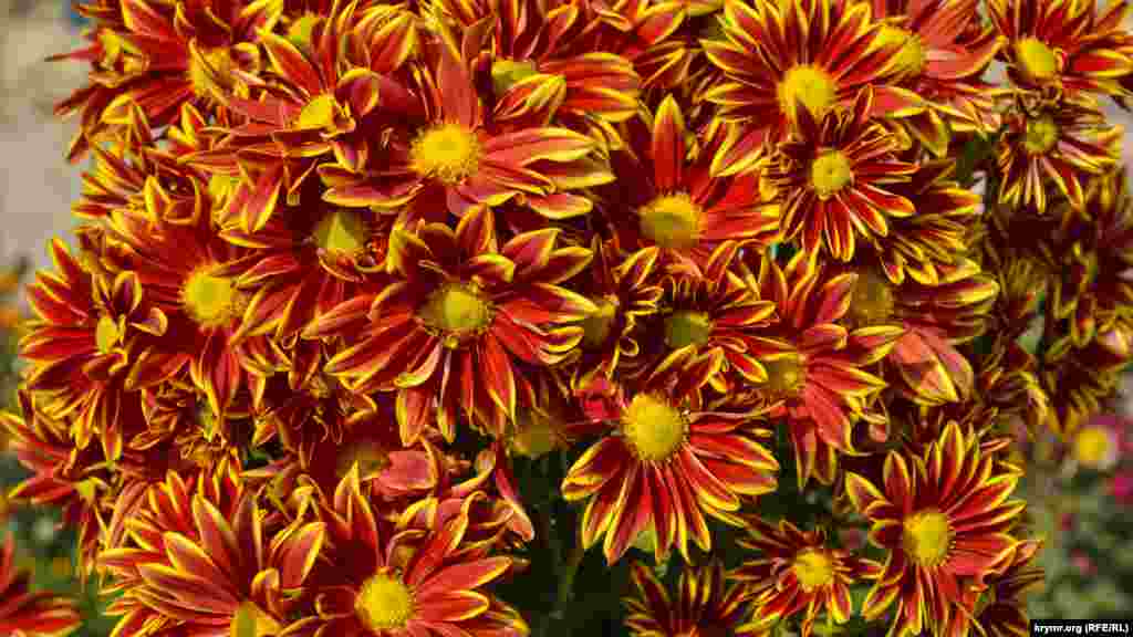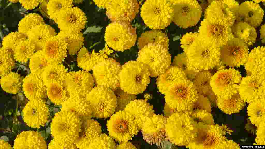 В этом году бал хризантем в Никитском ботсаду открылся в 66-ой раз и получил название «Золотой цветок». На основной площадке в центре высадили крупноцветковые хризантемы, но из-за жаркой погоды октября они еще не успели распуститься. Зато мелкоцветоковые сорта уже вовсю радуют глаз гостей бала. Корреспондент Крым.Реалии запечатлел на фото главных «виновниц торжества» и посетителей, которые пришли насладиться их красотой.