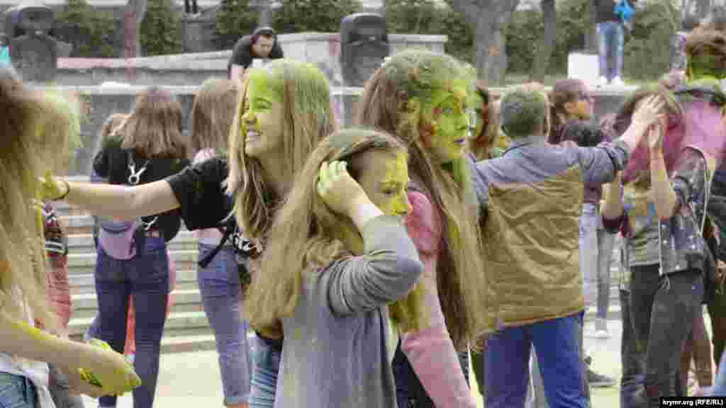 В воскресенье 21 мая в Феодосии состоялся праздник красок. На площади возле светомузыкального фонтана дети и взрослые бросались разноцветными красками, танцевали, участвовали в конкурсах.