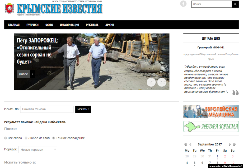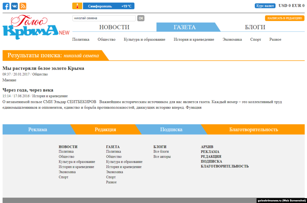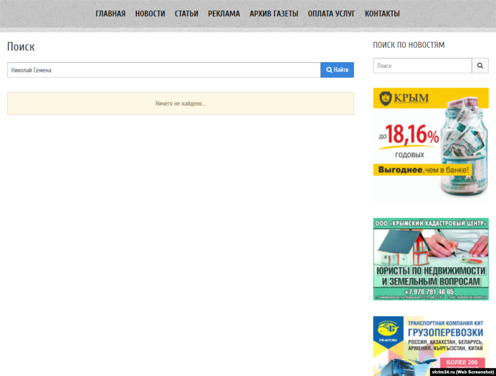Ведущие крымские СМИ, вообще никогда не упоминавшие Николая Семену