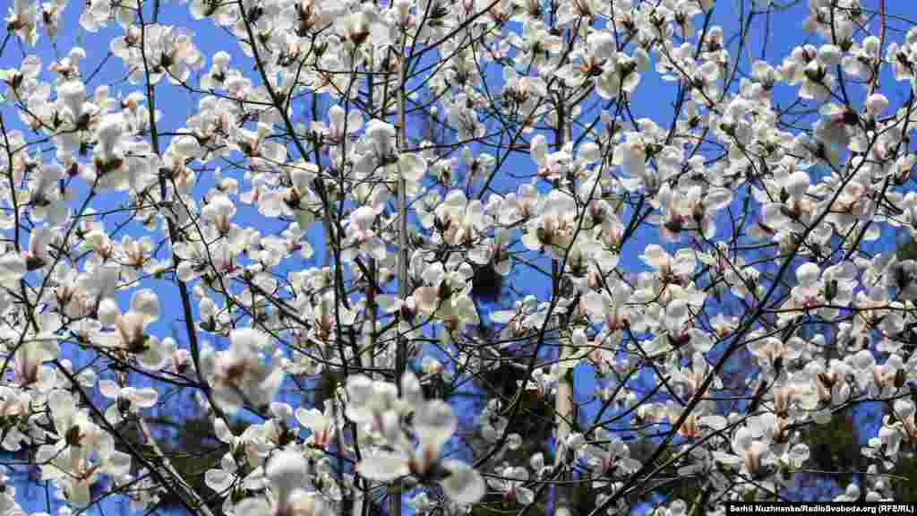 В киевском Ботаническом саду имени Фомина расцвели первые магнолии. Деревья начали распускаться несколько дней назад, когда столбик термометра поднялся до отметки +15 градусов. Пока цветы появились лишь на трех деревьях, цветение остальных магнолий ожидается через 5-7 дней. Посетители сада наслаждаются ароматом растений.