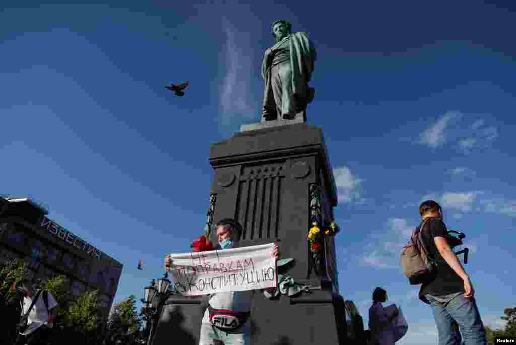 В последний день голосования в Москве и Санкт-Петербурге прошли пикеты против поправок к Конституции России. Как это было – смотрите в фоторепортаже.