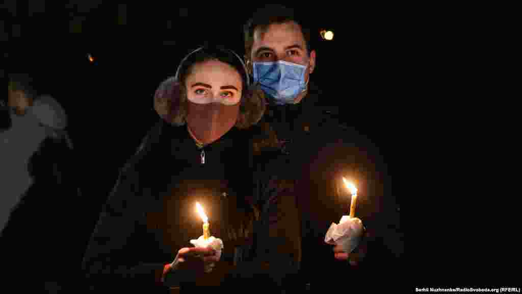 В Киеве возле «Мемориала жертвам Голодомора» собрались сотни людей, чтобы почтить память погибших от голода.