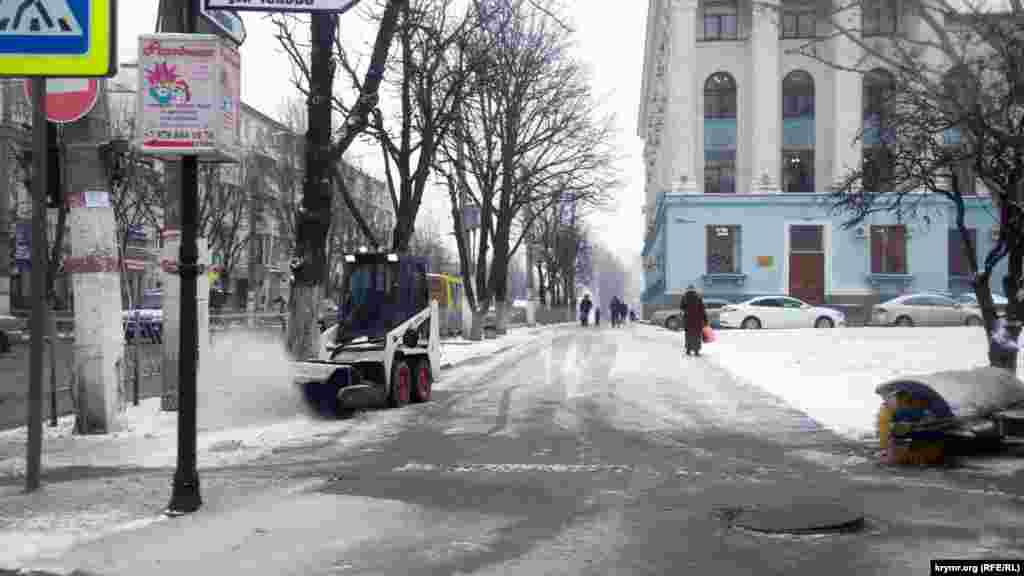 Уборщики старательно расчищают дороги для тех, кому непогода – не помеха