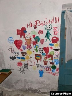 На фотографиях, которые Валерия Видковская сделала после ухода российской армии из Ягодного, стена с детскими рисунками и надписью "Нет войне".
