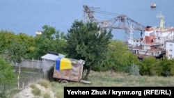 На обратном пути у дачного кооператива вижу на будке-прицепе украинский «флаг». Сейчас в Севастополе такое нигде не увидишь, но в здешней глуши это, похоже, никого не смущает.