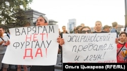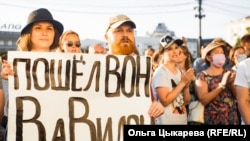 – У меня другого руководства нет. Пусть вернут нам Сергея Ивановича, пусть он продолжает работать. Я за него не голосовал, сто лет на выборы не хожу. Но сейчас я вышел за него, и буду выходить за него, – говорит Артем Демченко, он несет плакат "Я/Мы Фургал". – А Фургал как кость в горле застрял у Москвы. У него же рейтинг выше, чем у Путина. Он много работал, посрезал чиновникам зарплату, накрыл коррупционные схемы. А то, что он бизнесмен, – да все это знают. Каких-то бизнесменов он якобы убил? Да в 2004 году бандиты только были, а не бизнесмены, и я ему верю, что он не убивал никого. Про нового, Дегтярева, толком не знаю ничего. Но слышал что-то, мол, он нас дубинками будет разгонять. Ага, посмотрю я, как он будет нас разгонять. Мне кажется, ему уже чемодан обратно пора собирать.
