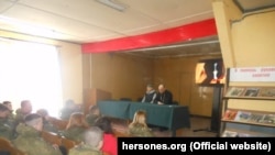 Подробностей о содержании беседы на сайте нет. Но на одном из фото виден экран, показывающий личному составу части стелу на Майдане Независимости в Киеве.