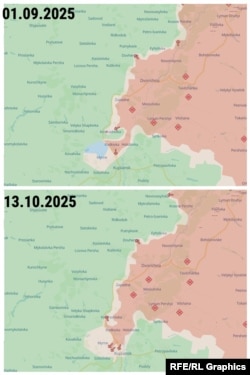 Дальше всего российская армия смогла продвинуться на южно-донецком направлении (собирательное название для стыка Запорожской, Днепропетровской и Донецкой областей). В сентябре, по данным DeepState, там ВС РФ удалось занять территории площадью почти в 130 квадратных километров (172 по подсчетам военного аналитика Конрада Музыки).