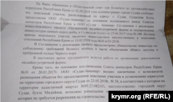 «Договор аренды земельного участка заключен министерством имущественных и земельных отношений республики Крым от 15.02.2018 года №20 н/23-2018», – говорится в письме.