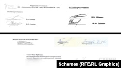 Журналисты «Схем» нашли подписи Тедеевой и Щекиной на документах украинских компаний. Визуально они могут показаться подобными, но для профессионального сравнения, сообщили журналистам эксперты, нужны не сканы, а оригиналы документов, и юридическое значение может доказать только официальная заказанная украинскими правоохранителями экспертиза.