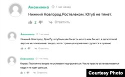 В комментариях россияне из разных регионов описывали проблемы с загрузкой видео. Так, пользователь из Перми сообщил, что сам сайт YouTube у него работает, но видео не загружаются даже в низком качестве ни в десктопной версии, ни в мобильной. Пользователь из Кирова рассказал, что ролики не успевают прогружаться, часто останавливаются и не загружаются дальше.