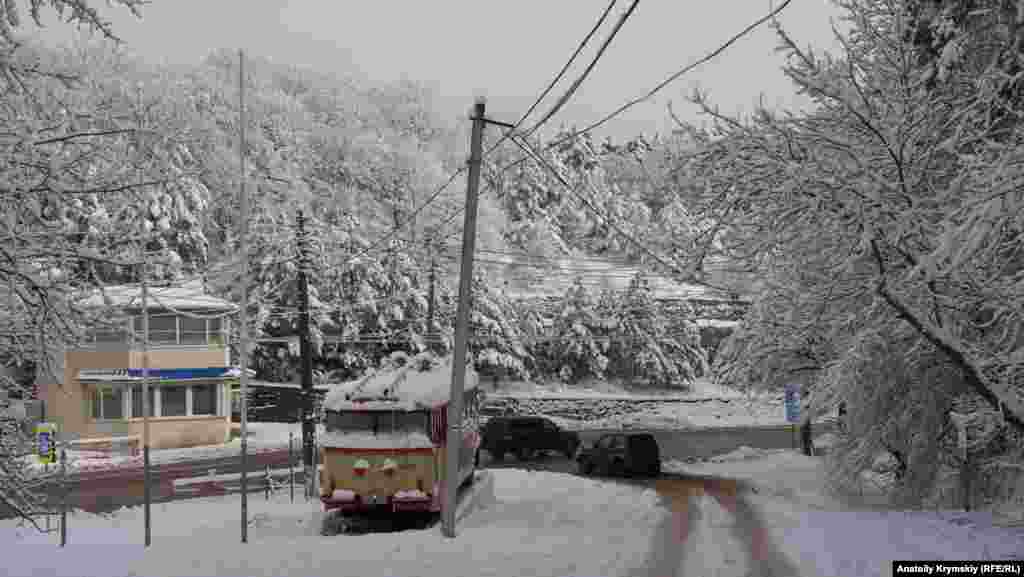 Возле автодороги Симферополь-Ялта, у памятника крымскому троллейбусу