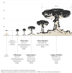 Источники: Радио Свобода, AFP, Ассоциация по контролю над вооружениями США, Atomic Archive, Фонд Atomic Heritage, The Barents Observer, Би-би-си, Федерация американских ученых, The Insider