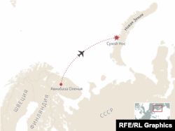 30 октября 1961 года Ту-95 вылетел с авиабазы Оленья на Кольском полуострове. Хоть это и был самый большой самолет советских ВВС, его пришлось модифицировать для такого массивного груза. И все равно бомба не поместилась внутри фюзеляжа, ее закрепили под ним. Самолет выкрасили в белый цвет, чтобы уменьшить воздействие тепловых лучей от взрыва.