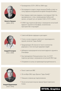 В 1952 году США провели испытания первой водородной бомбы "Майк", а в 1954 году состоялись испытания крупнейшей американской атомной бомбы "Касл Браво". В Советском Союзе также шли работы над водородной бомбой: первый взрыв был произведен в 1955 году. Но это было лишь начало. Советский лидер Никита Хрущев хотел показать военную силу СССР и распорядился создать самую мощную бомбу в мире.