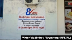 На фасаде местного административного здания также висит информация о дне голосовании.