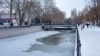 В последние несколько дней на полуострове наблюдалась холодная погода с отрицательной температурой воздуха. Этого хватило, чтобы поверхность реки Салгир в центре города покрылась слоем льда.